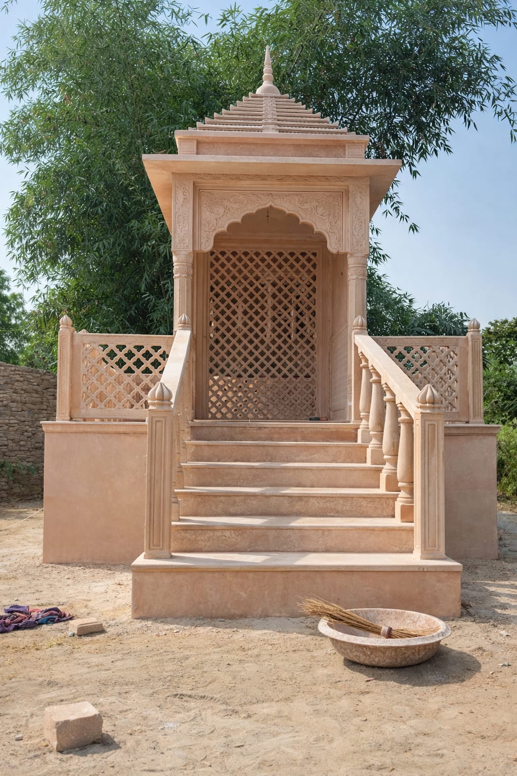 The pink sandstone temple is constructed from high-quality Banshi Paharpur sandstone with a polished and hand-carved finish. Each pink stone temple is shaped using CNC-supported carving along with skilled artisan detailing to achieve fine jali work and smooth finishing. This makes the pink sandstone temple highly resistant to heat, rain, and environmental wear, making it ideal for Indian climates. For buyers comparing a pink stone temple with marble structures, sandstone offers better durability and a more traditional appearance.