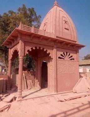 The Red stone Mandir Design offered by Shri Krishna Stone Company represents traditional Indian craftsmanship combined with reliable stone quality from Rajasthan. This mandir is made using authentic Banshi Paharpur stone, a material widely trusted for temple construction across India due to its strength, natural colour, and long life.