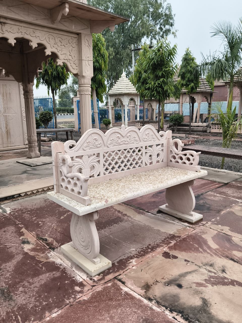 2. Sandstone Carved Garden Bench – Decorative floral and lattice carvings.