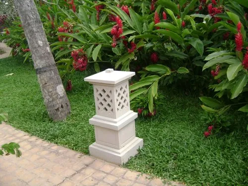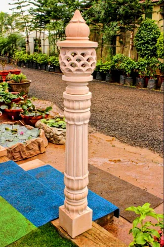 The design of the Sandstone Garden Lamp reflects the traditional art of Rajasthan. With fine cutwork and pillar-style carving, the lamp serves both functional and decorative purposes. Whether placed along garden pathways, around pools, or at the entrance of villas and temples, it enhances the ambiance with its unique charm.