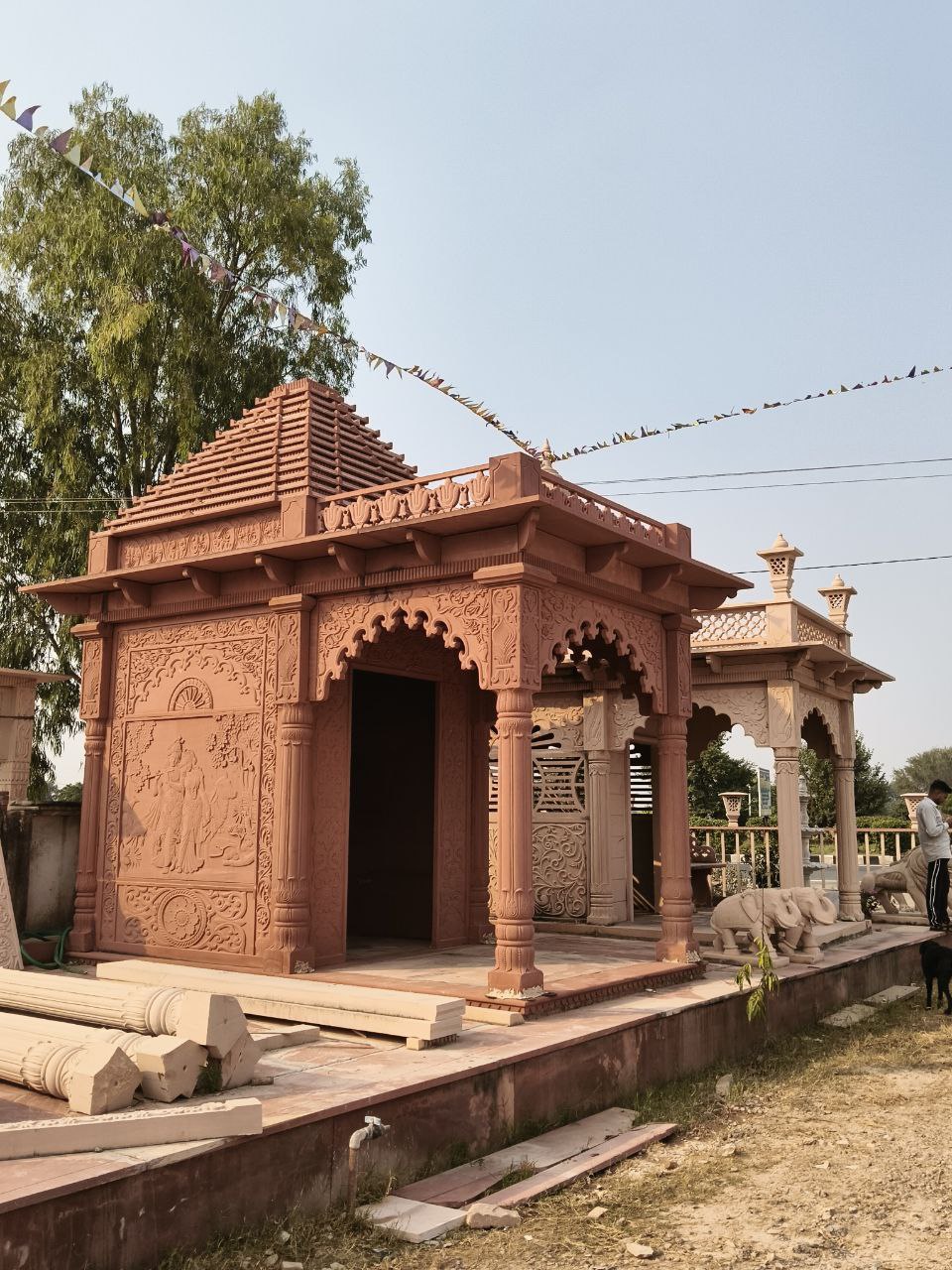 Sandstone Temple Construction by Shri Krishna Stone Company represents the perfect blend of traditional craftsmanship and modern architecture. This stunning temple structure is designed with precision, using premium quality red sandstone sourced from Banshi Paharpur and Dholpur—two of India’s most renowned stone regions. Each piece is handcrafted by skilled artisans who specialize in creating divine spaces that radiate peace, devotion, and timeless beauty.